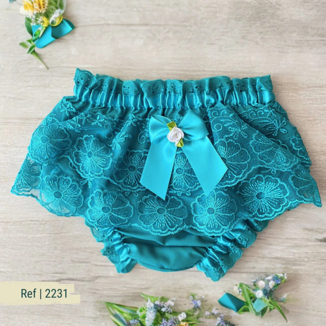 Calcinha Renda de Luxo: a peça que toda revendedora de roupa infantil quer ter no estoque! Ideal para bebês de 9 meses a 2 anos, essa calcinha "bunda rica" é puro charme e conforto. Com elástico embutido que abraça sem apertar, acabamento em fita de cetim e bordado inglês, é luxo que a pequena merece! Ah, e o modelo da renda pode variar – porque ser única é tudo! Garanta essa fofura e faça sucesso nas vendas!